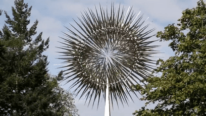下面的作品名叫「in out quotient」专为美国罗斯堡警察和消防部门大楼制作,旋转部分由60条手臂相连接,高约4米,感觉有点像是螺旋丸。