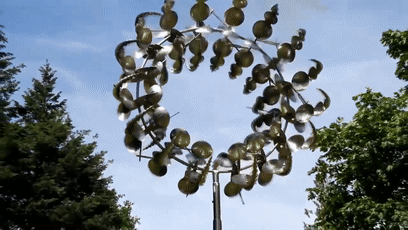 这些在风中优雅旋转的金属雕塑名叫「风动力雕塑」,全部由钢铁打造。而它们之所能够自己动,是因为Anthony Howe在制作时参考了风车的原理。
