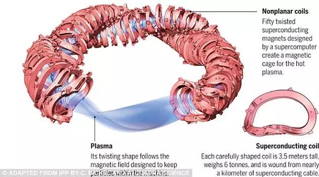 目前的实验利用的都是形如甜甜圈的反应器,如世界上最大的“仿星器”装置。该反应器名为“Wendelstein 7-X”(简称W7-X)。它可以耐得住等离子体的超高温考验,每次时间可超过30分钟。