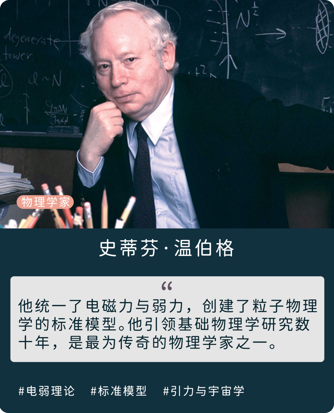 参考来源:https://journals.aps.org/prl/abstract/10.1103/PhysRevLett.19.1264?utm_source=article-collection&utm_medium=web&utm_campaign=1967https://breakthroughprize.org/News/61https://cns.utexas.edu/news/steven-weinberghttps://physics.aps.org/articles/v11/134