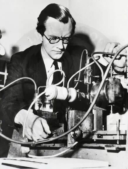 工作中的罗莎琳德·富兰克林。By MRC Laboratory of Molecular Biology - From the personal collection of Jenifer Glynn., CC BY-SA 4.0, https://commons.wikimedia.org/w/index.php?curid=68494240