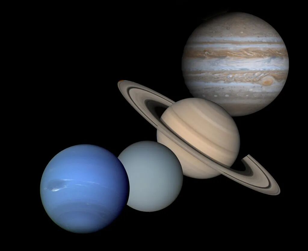 太阳系中带有环系统的行星,包括土星、木星、天王星和海王星。(图/NASA, JPL)