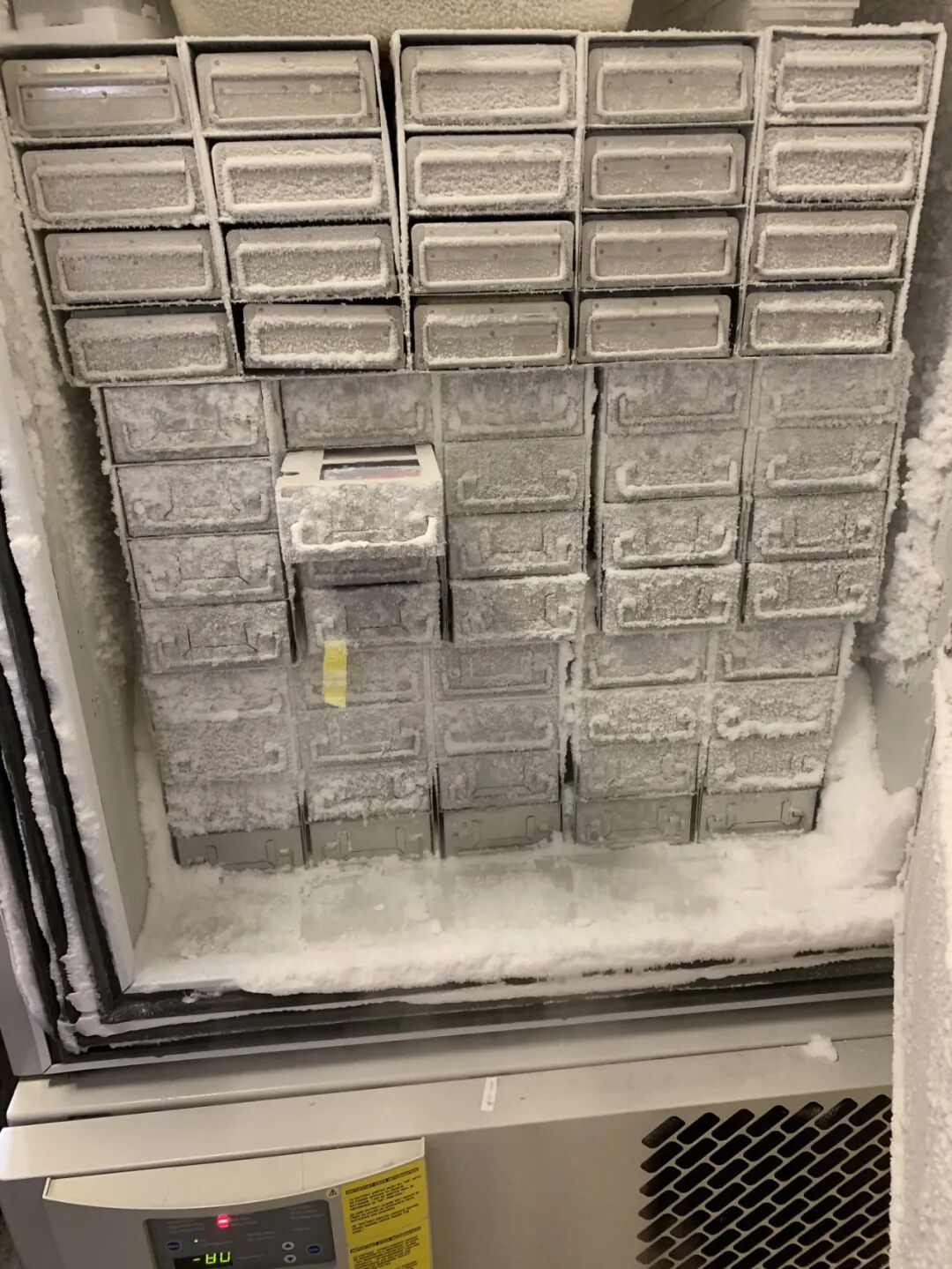 塞满了2个2米高冷冻柜的噬菌体库。(图片来源:Graham Hatfull Lab)