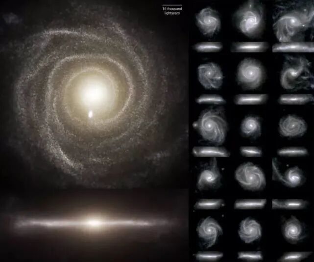 TNG50的特点是这种有两个突出的例子,第一个是关于“圆盘”星系的形成,就像银河系。使用模拟作为一台时间机器来倒退宇宙结构的演变,研究人员已经看到了有序、快速旋转的圆盘星系是如何在更早的时期从混乱、混乱和高度动荡的气体云中出现。随着气体稳定下来,新生恒星通常会出现在越来越多的圆形轨道上,最终形成大型螺旋星系--星系传送带。TNG50表明银河系及其薄盘处于星系发展的巅峰: