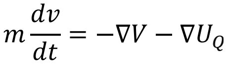 一个再熟悉不过的牛顿定律,就妥妥地描述了粒子的行动轨迹!其中 -▽UQ 就是一种力,在微观世界里产生各种量子效应的力。