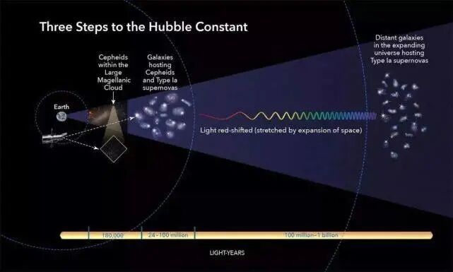 这个宇宙膨胀历史的模型是用传统哈勃常数测量组合而成,这些常数是从138亿年前宇宙开始时宇宙微波背景辐射(CMB)(宇宙开始时的剩余辐射)的“远距离”观测中获得。许多小组开始使用不同技术和研究宇宙的不同部分来获得哈勃常数,并发现从近太阳系和遥远天体观察中获得的值不一致。加州大学戴维斯分校物理学教授克里斯·法斯纳赫特(Chris Fassnacht)表示: