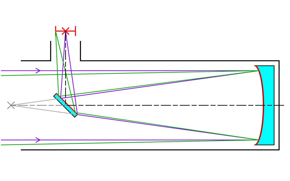 ○ 牛顿望远镜的光路径示意图。| 图片来源:Wikipedia