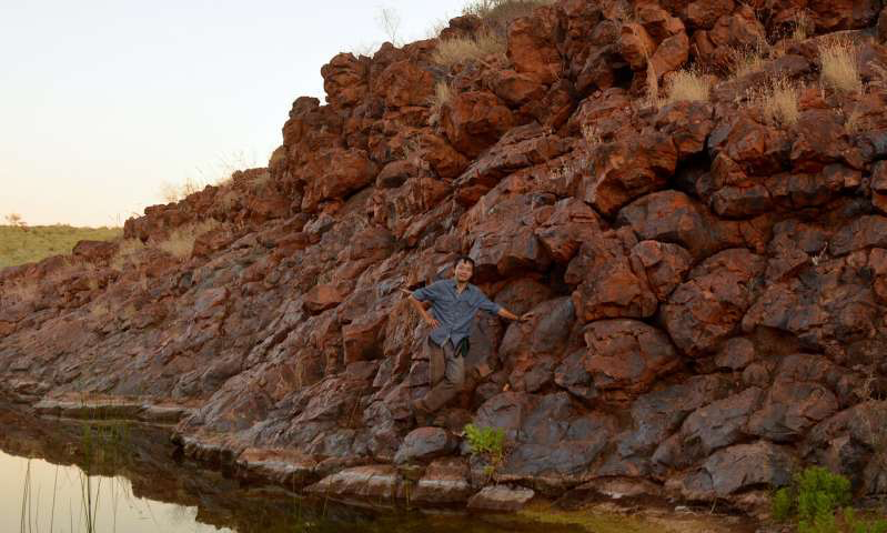○ 论文的主要作者Roger Fu教授于西澳大利亚的Honeyeater玄武岩边。| 图片来源:Alec Brenner / Harvard University