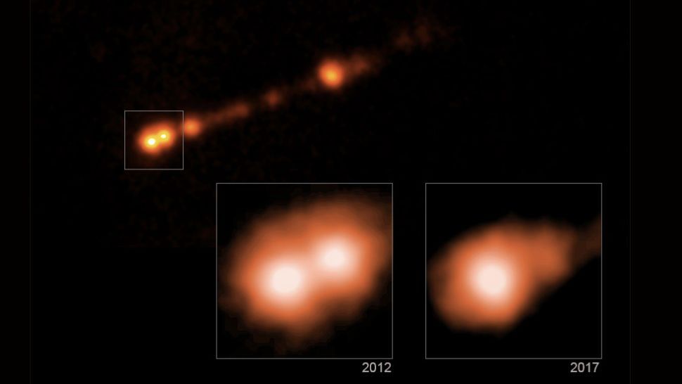 ○ 这一惊人的速度是通过观察2012年至2017年间黑洞喷流区域X射线发射的变化而发现的。| 图片来源:NASA/CXC/SAO/B. Snios et al.