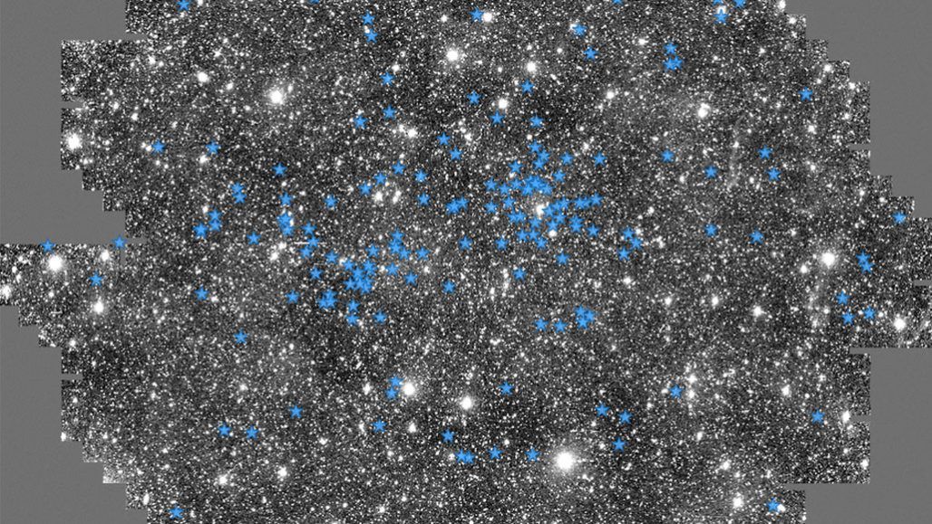 银河系的边缘是银河系最古老恒星的所在,但是天文学家在这个区域发现了一些意想不到的东西——一群年轻的恒星(图中蓝色)。光谱分析表明这些新生的恒星似乎起源于银河系外,它们的组成物质来自两个附近的矮星系,即麦哲伦云。这些星系与银河系处于碰撞过程中。这些新发现的恒星有望揭示出更多银河系的历史,比如麦哲伦云在过去是否与银河系相碰撞。