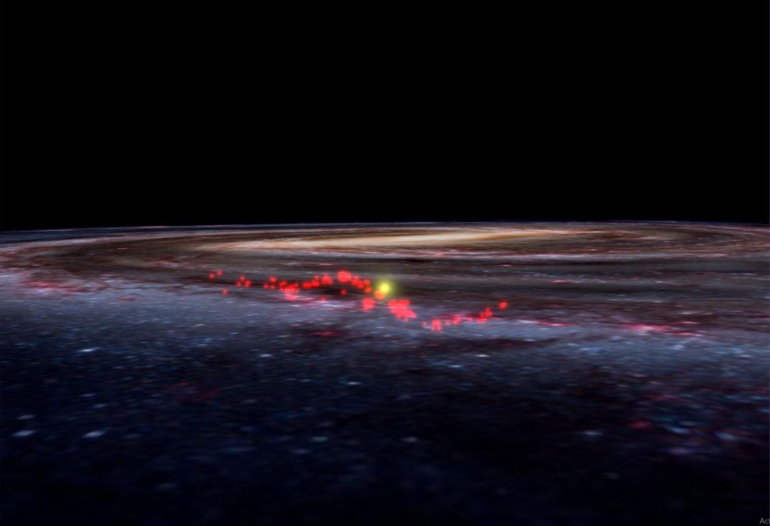 天文学家将来自盖亚(Gaia)卫星的超精确数据与其他观测数据结合起来,构建了银河系星际物质的详细3D图,并注意到离地球最近的旋臂上出现了一个意想不到的结构。研究人员发现了一个长而薄的结构,长约9000光年,宽约400光年,呈波浪状,波峰距星系盘的中心平面约500光年。科学家将这个巨大的气体结构命名为“拉德克利夫波”(Radcliffe wave)。