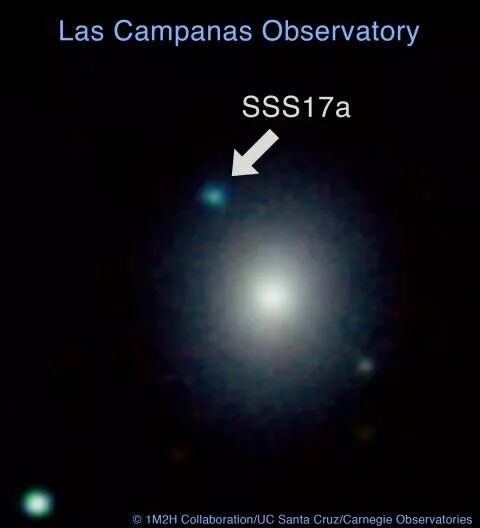 此后全世界多个望远镜对这个光学爆发现象的亮度演化与光谱演化进行了大约30天的观测,直到它彻底暗下去。持续的观测与分析证明,这个光学爆发现象确实是一些天文学家苦苦搜寻了近20年的千新星。这是第一颗被确认的千新星。
