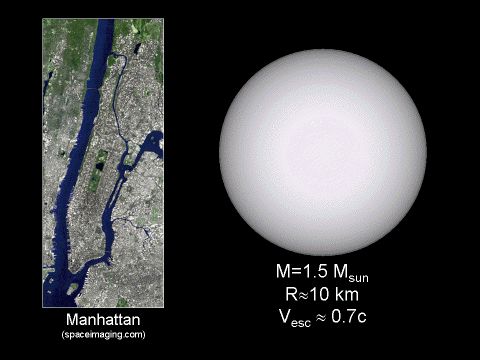 图:中子星大小与曼哈顿岛的比较。