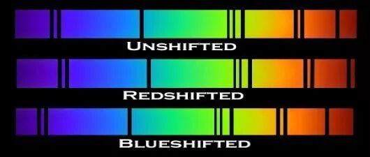 没有红移或蓝移的光谱(上),红移(中),蓝移(下)