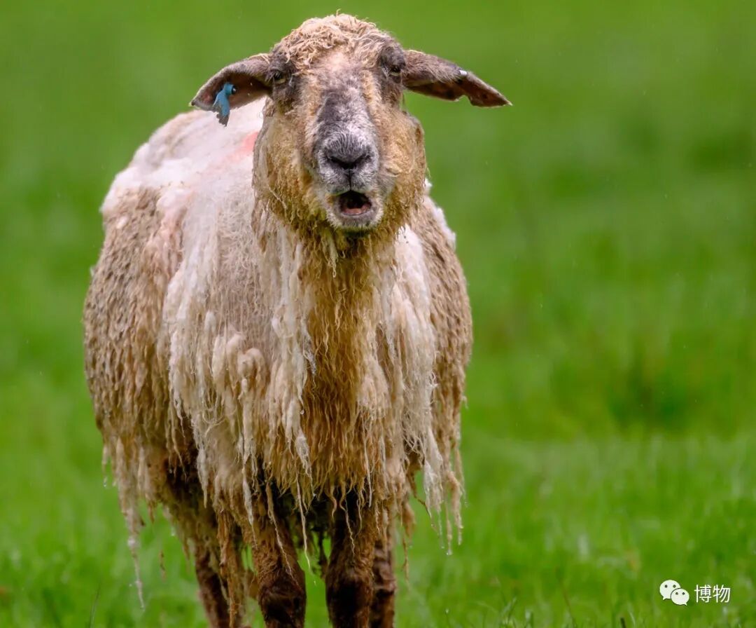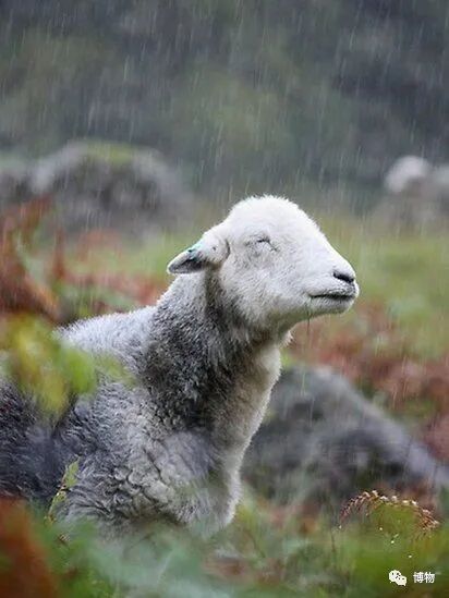 当羊穿着“毛衣”一动不动的时候,表层的羊毛就会形成一层疏水的“铜墙铁壁”,可以有效地把雨水阻挡在外。
