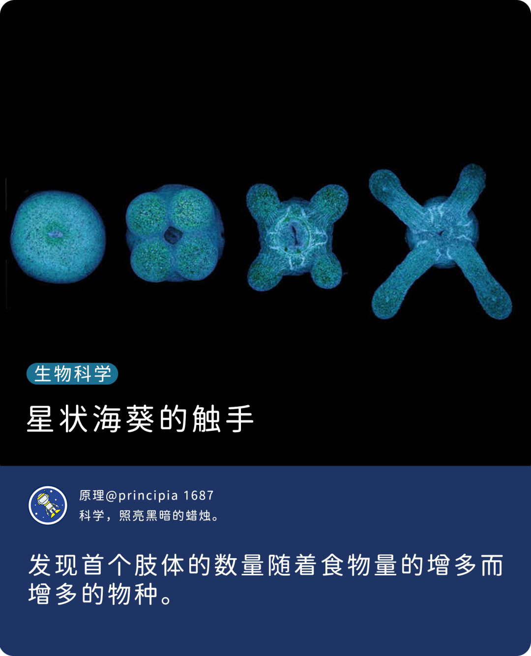 为了找到这个问题的答案,在一项新的研究中,一组生物学家在实验室中培养了1000多个正在成长的星状海葵,并在喂养的过程中,注意到一个有趣的现象。他们发现,星状海葵的触手数目的增加,与食物的摄入之间存在依赖关系——给星状海葵喂养更多食物,它们的触手出现得越快,有的可以在几天之内就长出新的成对的触手;但当喂养速度减慢时,触手的生长就会随之减缓。