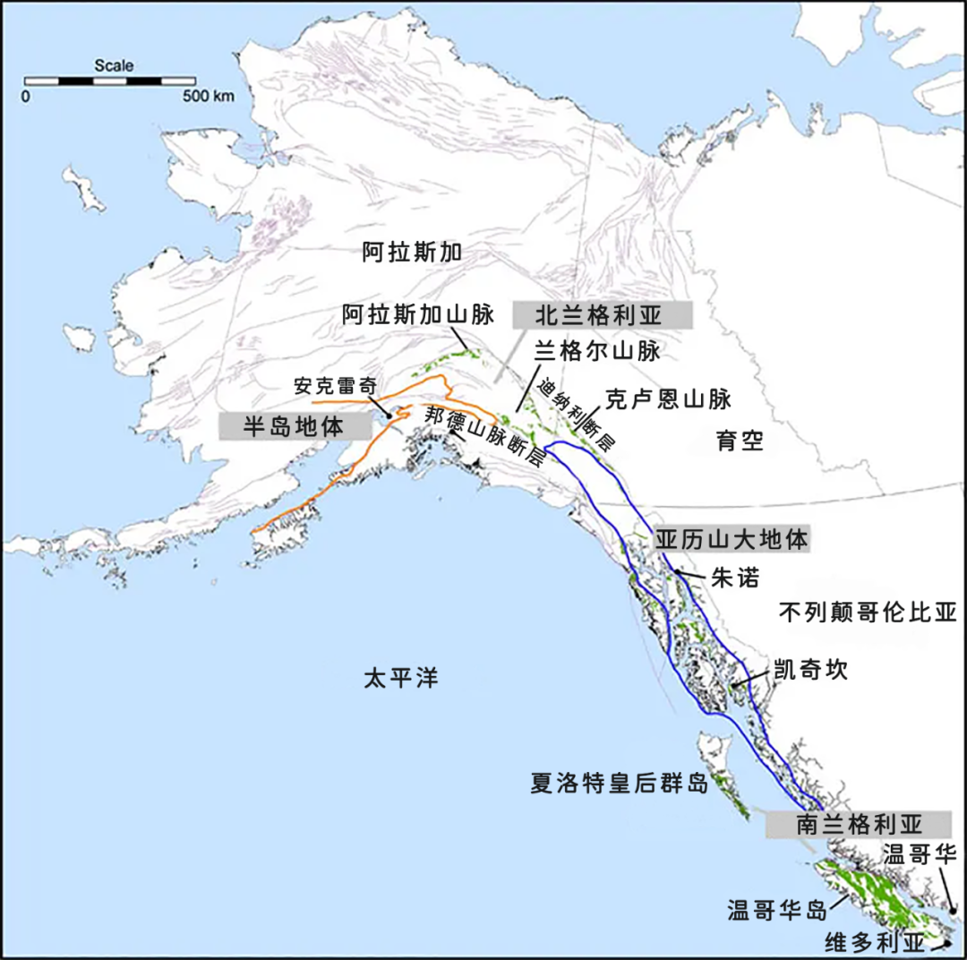 地图显示了兰格利亚溢流玄武岩在阿拉斯加、育空和不列颠哥伦比亚的分布。| 图片来源:University of British Columbia (EOAS)