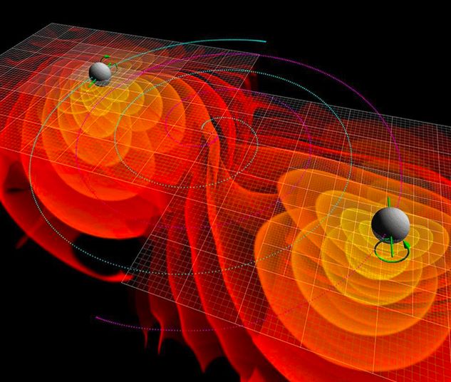 图中展示了时空结构中,质量所导致的波纹和变形。然而,虽然在这个空间中发生了许多事情,但这个空间本身并不需要被分解成单个的量子。|图片来源:Lionel Bret,欧洲引力天文台,EUROLIOS