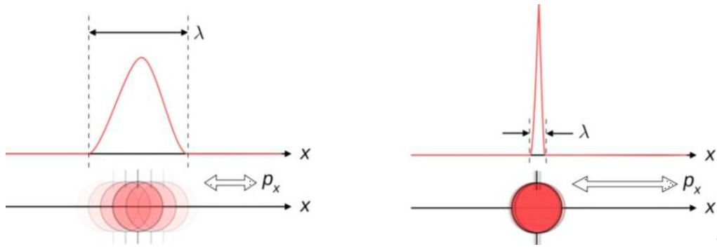 这个图阐释了位置和动量之间固有的不确定关系。如果其中一个知道得更准确,那么能够准确知道另一个的可能性就会更低。| 图片来源:维基共享用户 Maschen