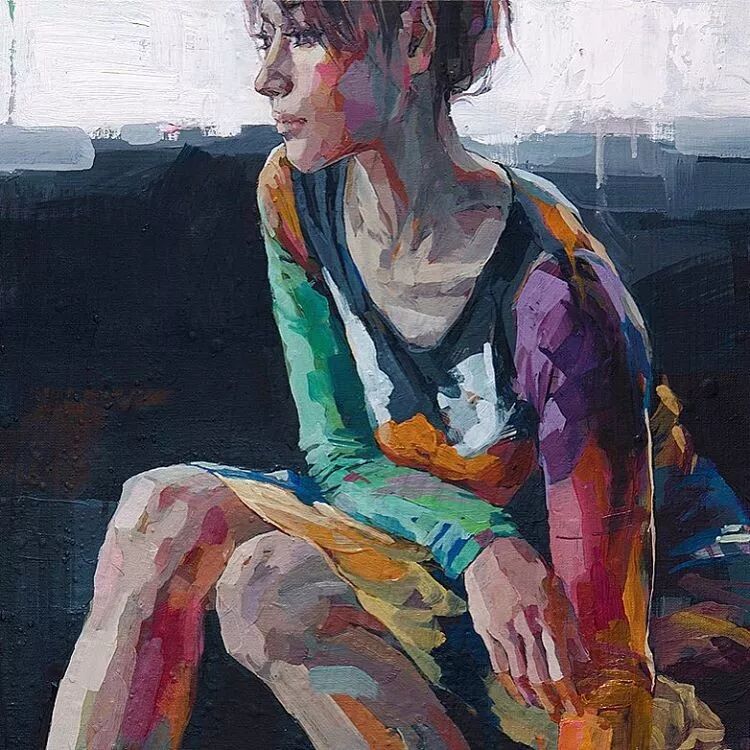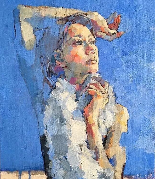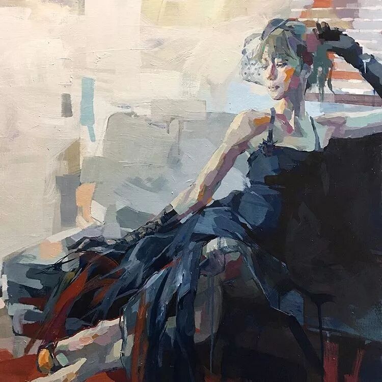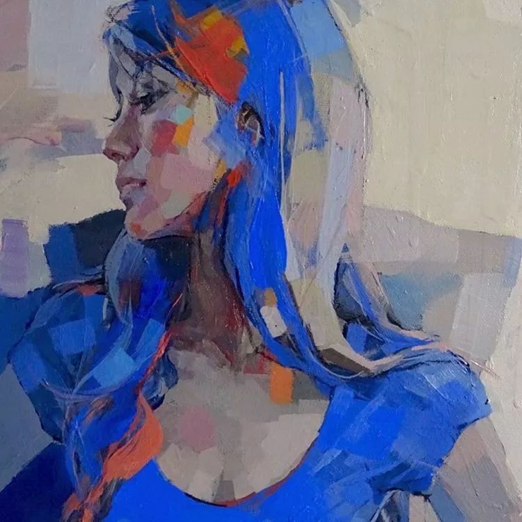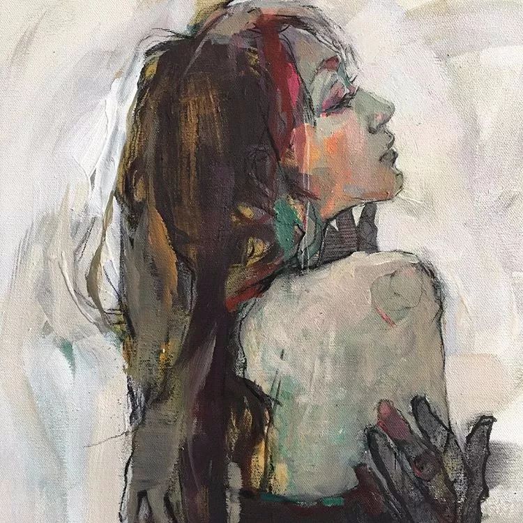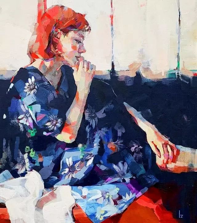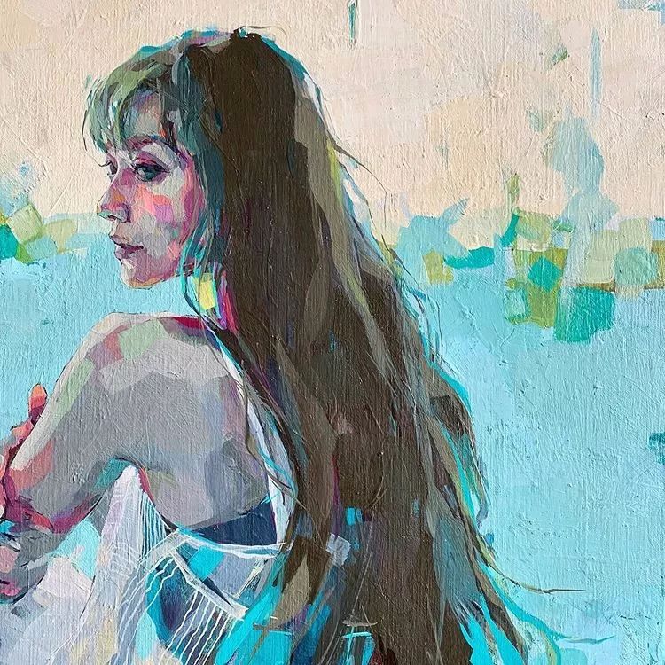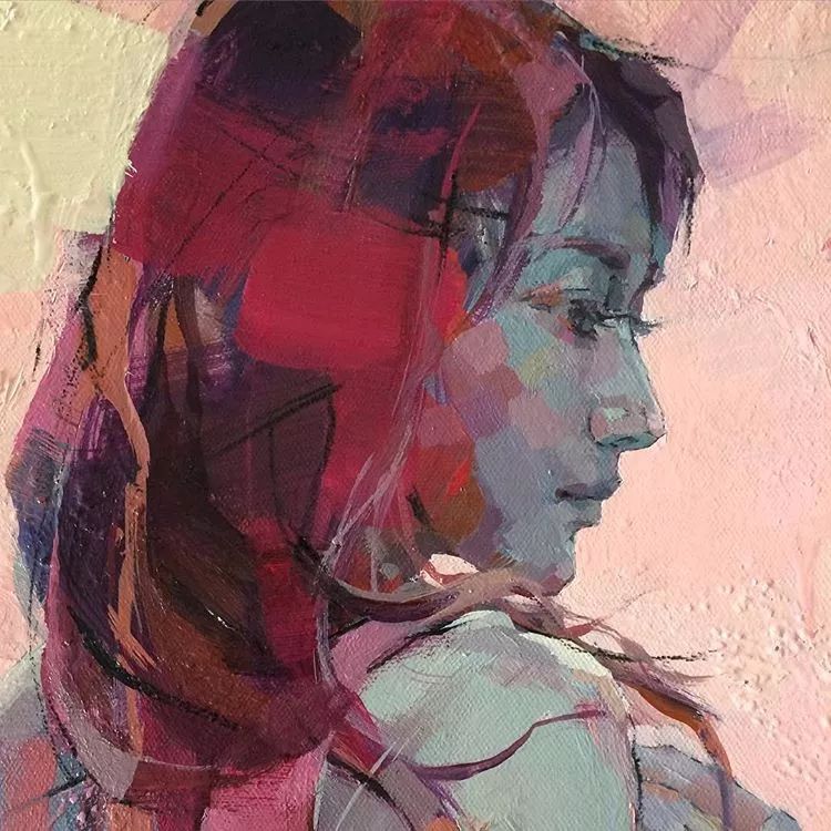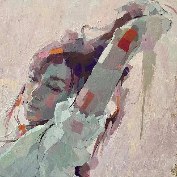 画面不是很写实的画风, 大笔触的色块充斥着画面, 有一种只可意会不可言传的奇妙体验。 正是这种处理让女性的朦胧美感 更好的衬托出来。