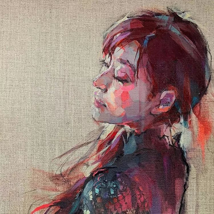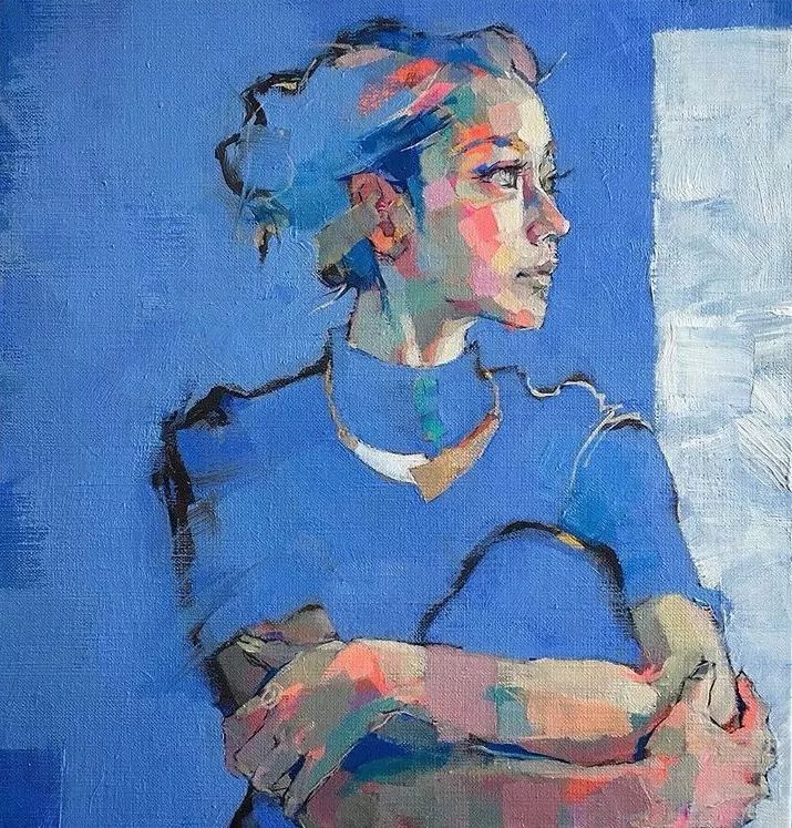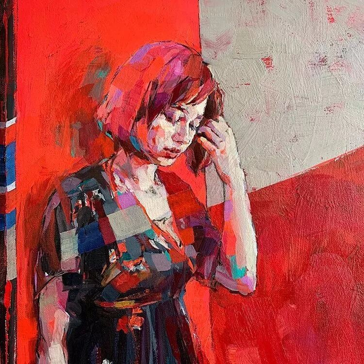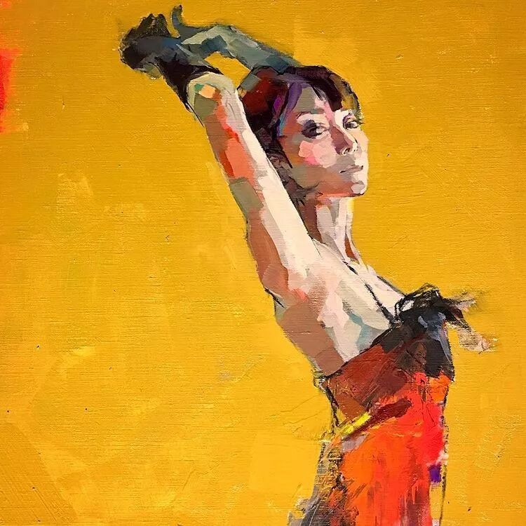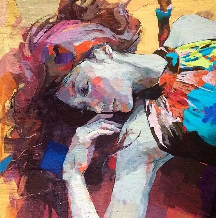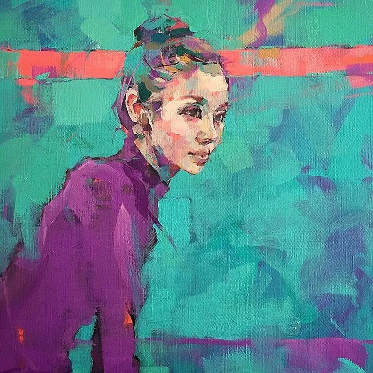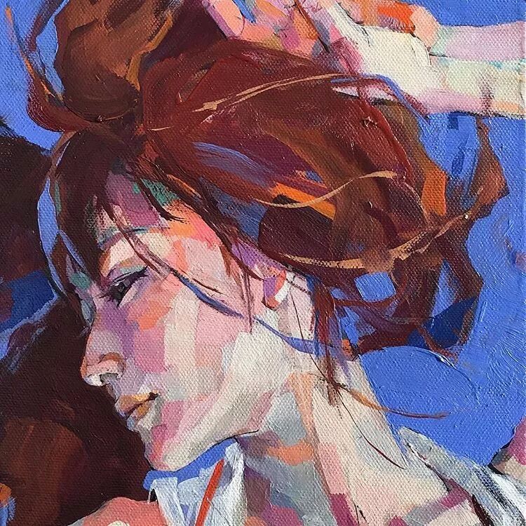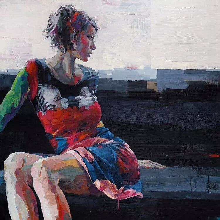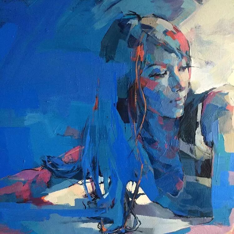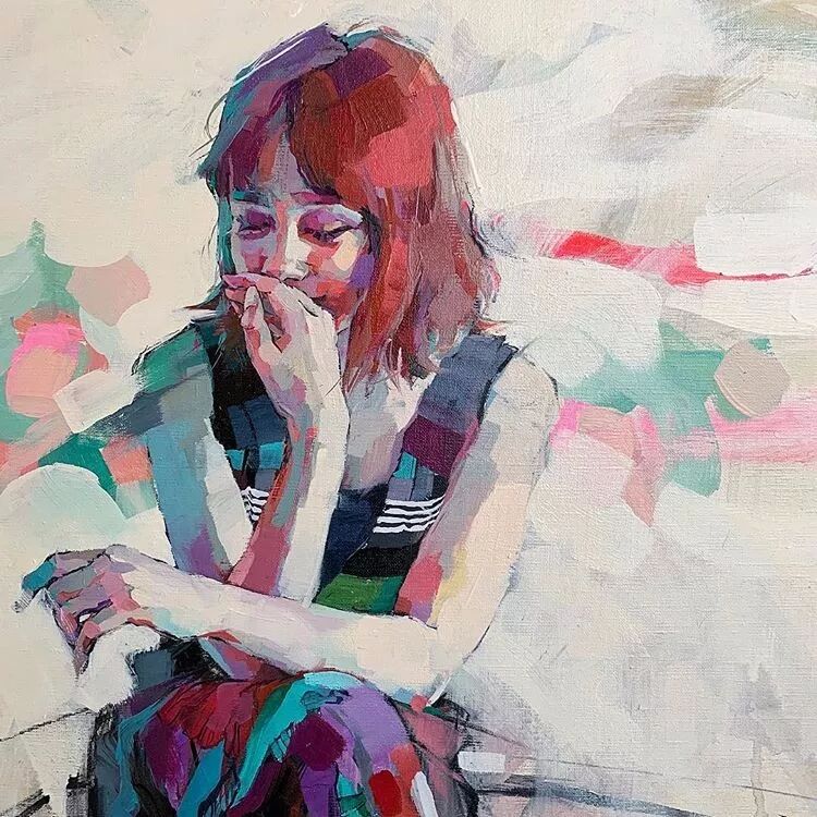 画面不是很写实的画风, 大笔触的色块充斥着画面, 有一种只可意会不可言传的奇妙体验。 正是这种处理让女性的朦胧美感 更好的衬托出来。