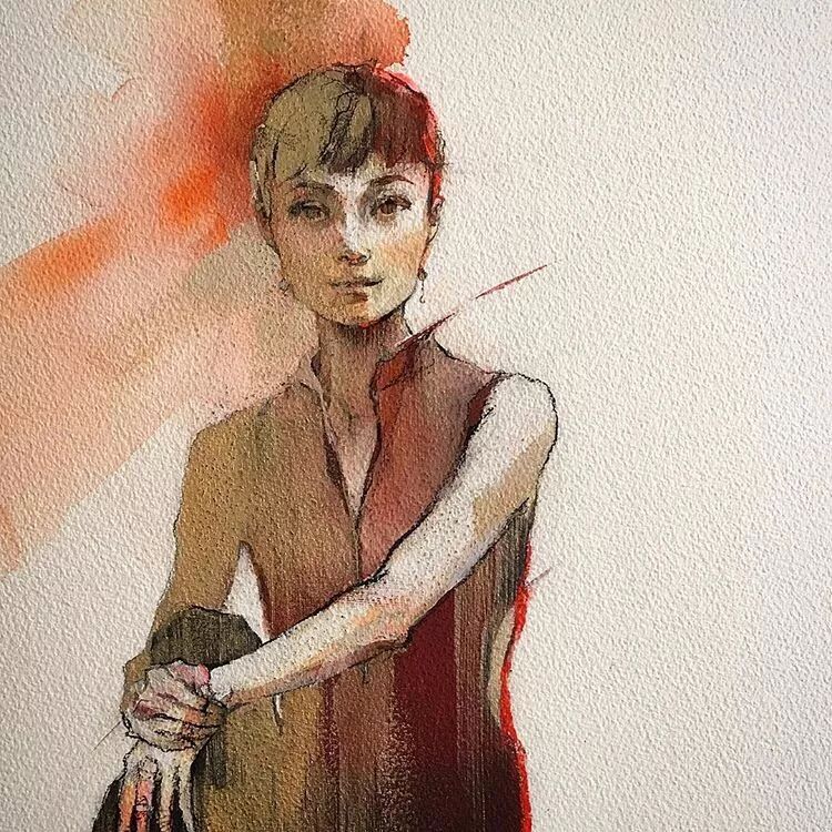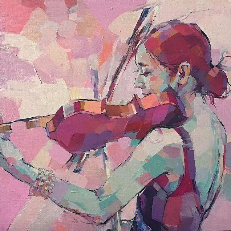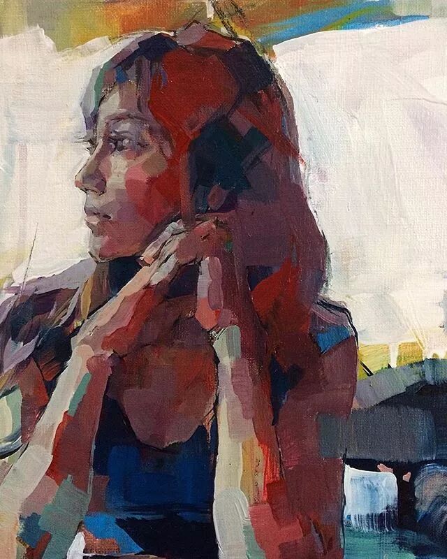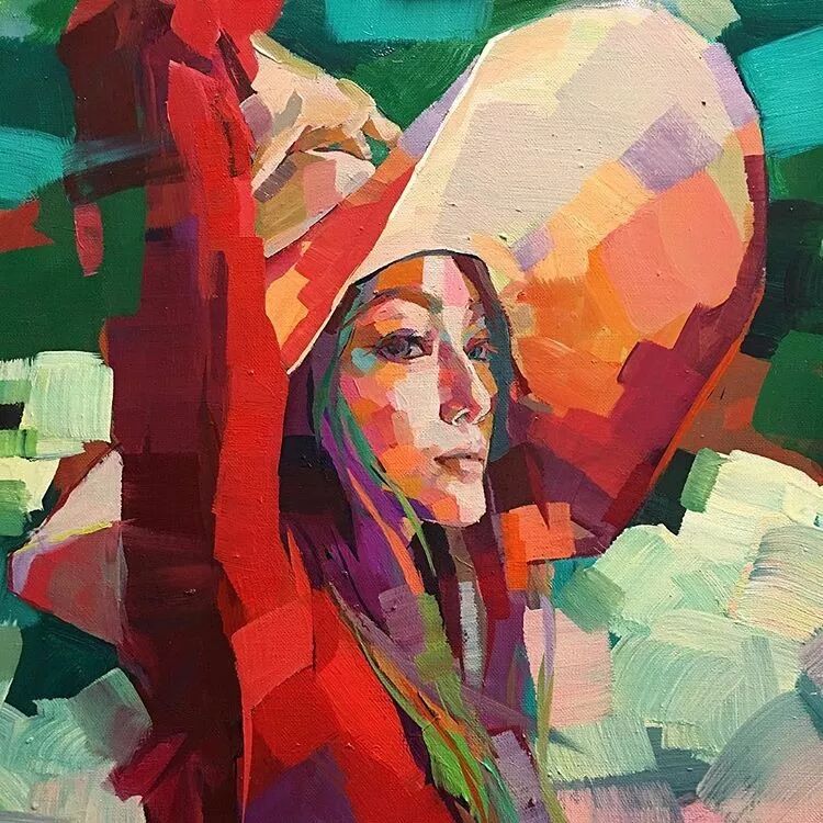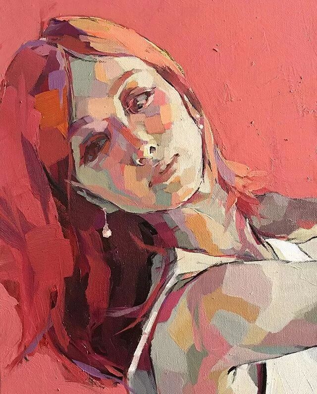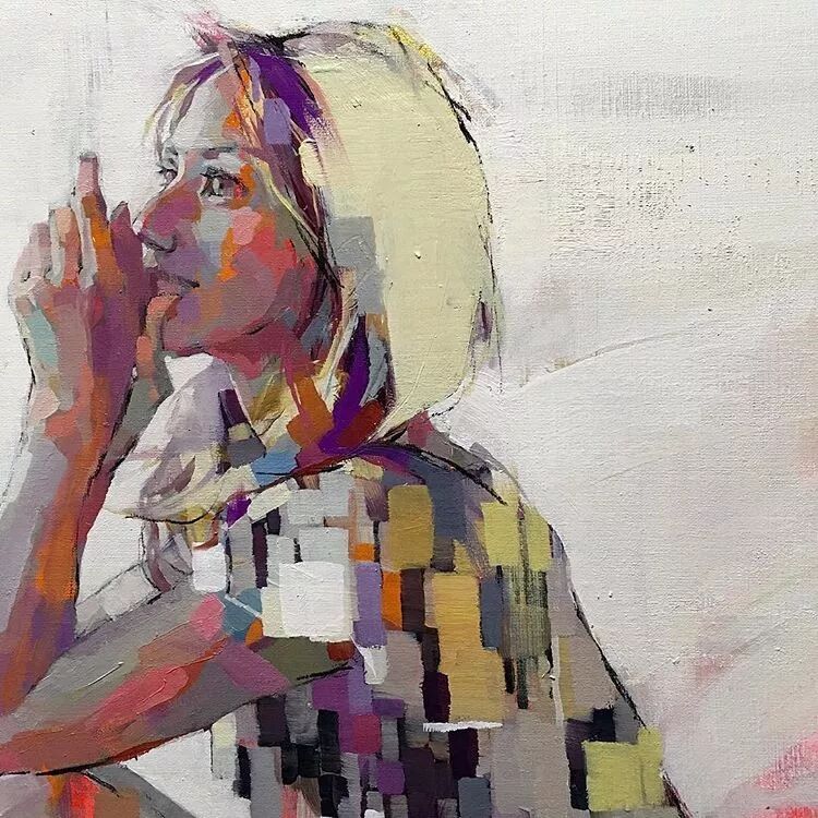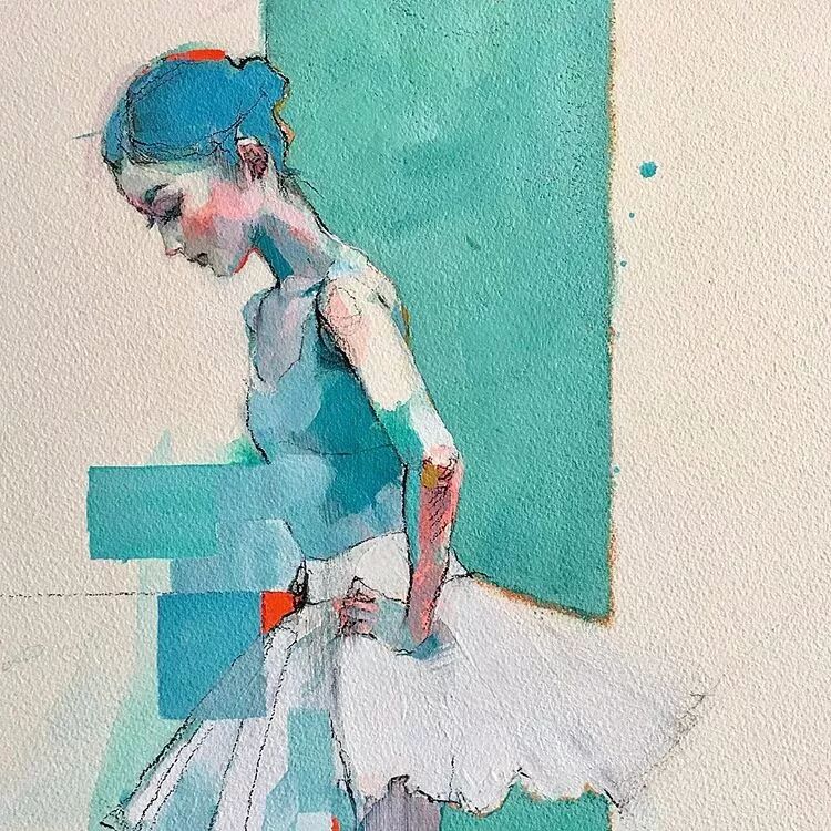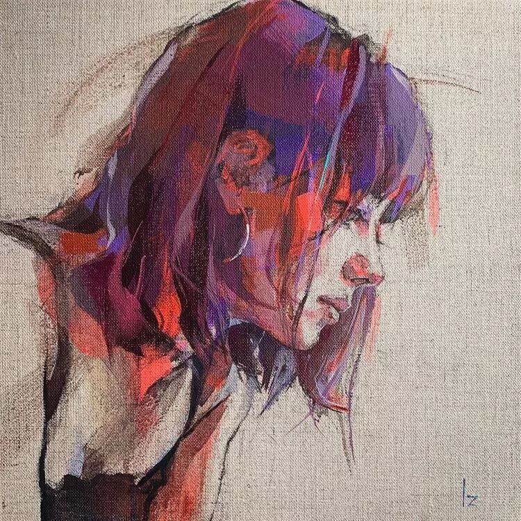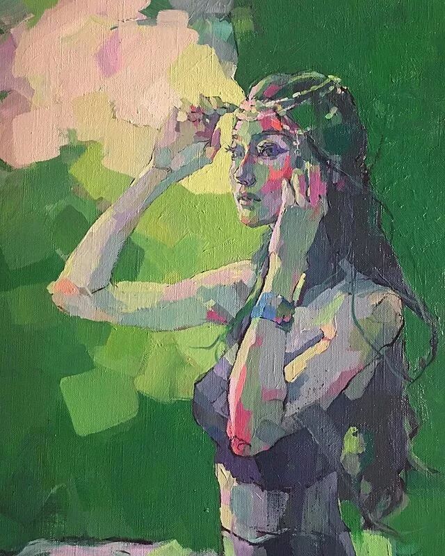 画面不是很写实的画风, 大笔触的色块充斥着画面, 有一种只可意会不可言传的奇妙体验。 正是这种处理让女性的朦胧美感 更好的衬托出来。
