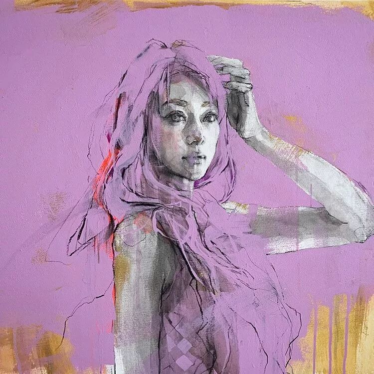 但这组作品,是近期看到的处理女性的美最棒的作品。完全的被折服。而作者正是日本画师