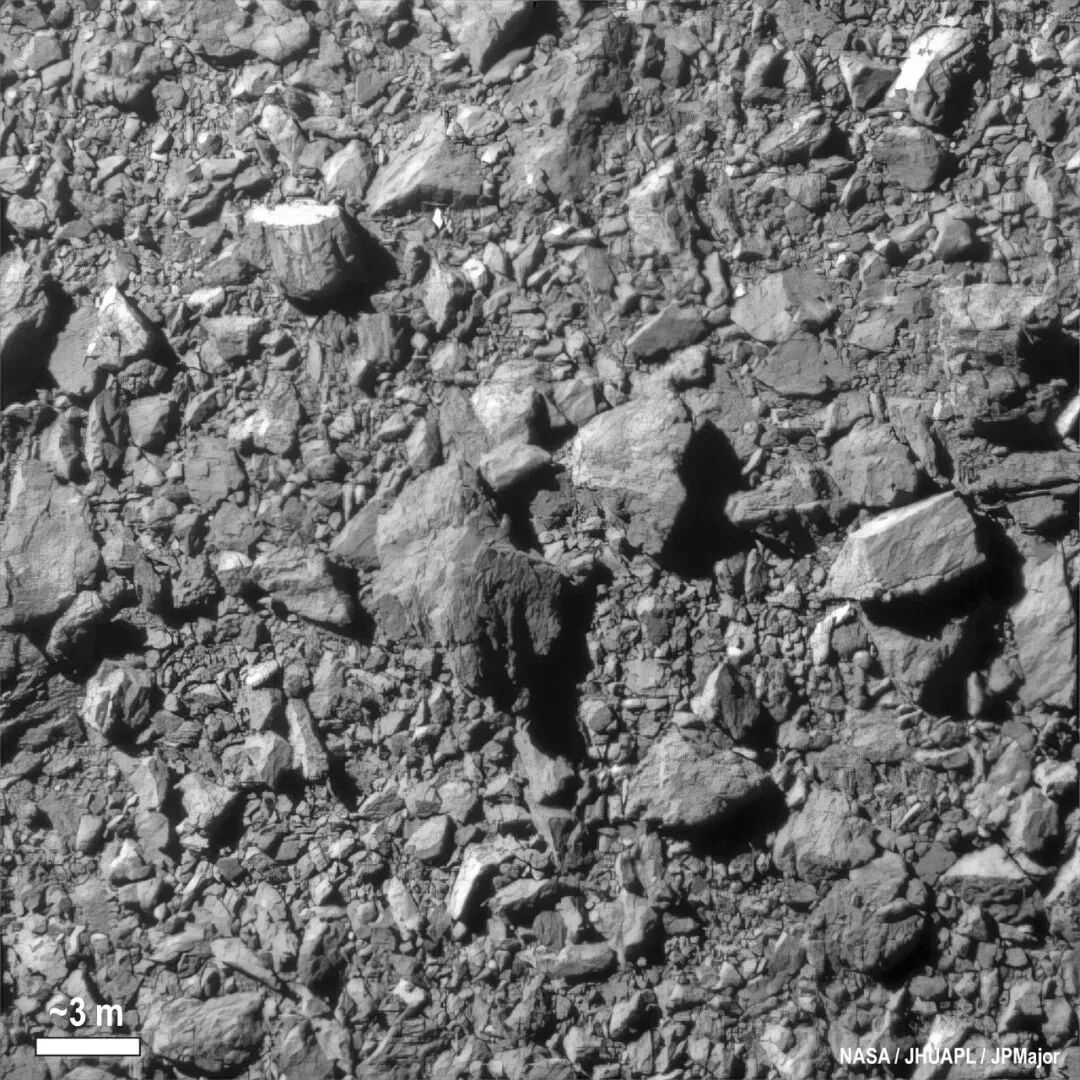 如果忽略亮度和色调上的差异(孪小星是S型,贝努是C型,成分不同),你甚至一时难以分辨这到底是哪颗小行星的表面。