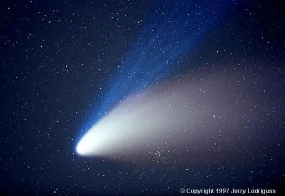 彗星的离子尾(蓝色)和尘埃尾(黄灰色)| 拍摄:Jerry Lodriguss