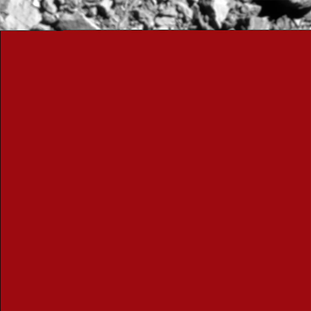DART探测器传回的最后一张影像,由DART探测器搭载的DRACO相机在撞击前1秒拍摄,此时航天器距离小行星表面约6千米。红色部分是尚未传回就中断的影像 | NASA/Johns Hopkins APL [1]