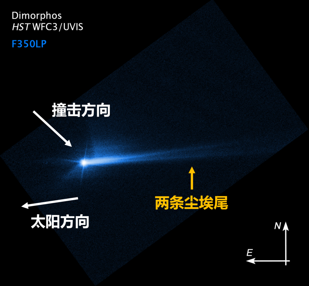 更奇妙的是,2022年10月8日,撞击发生285个小时后,哈勃空间望远镜发现:孪小星竟然又长出了第二条“尾巴”!
