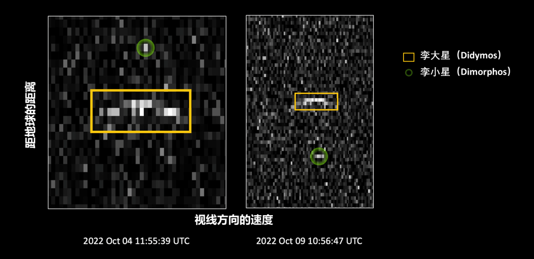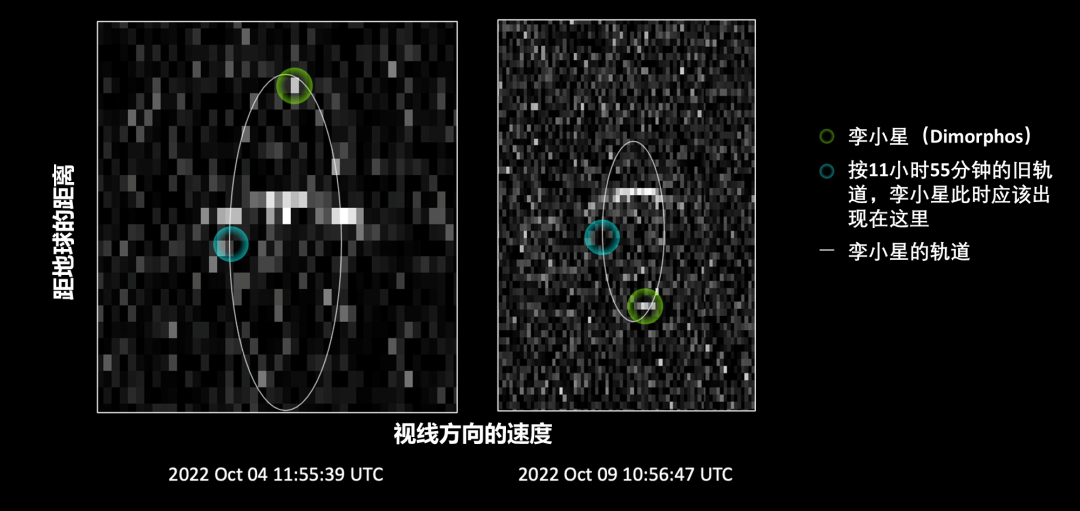 2022年10月4日和9日,双星系统雷达影像中的位置变化,如下图所示。