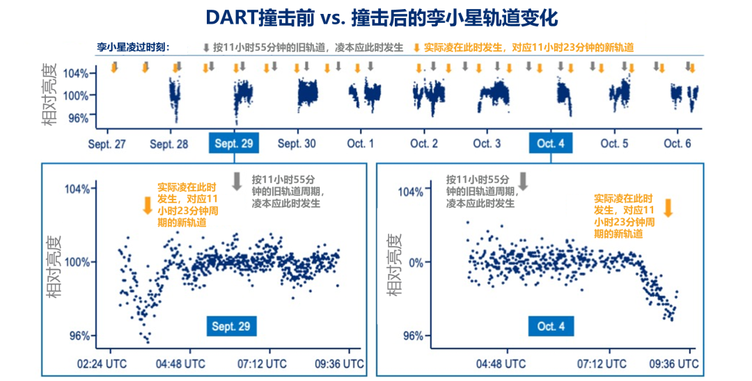 地基天文望远镜通过持续观测双星系统的亮度,就可以通过亮度变化的周期来确认撞击发生之后伴星孪小星环绕主星孪大星的新周期——这可比观测一颗孤零零的小行星微小的轨道变化要容易多了。