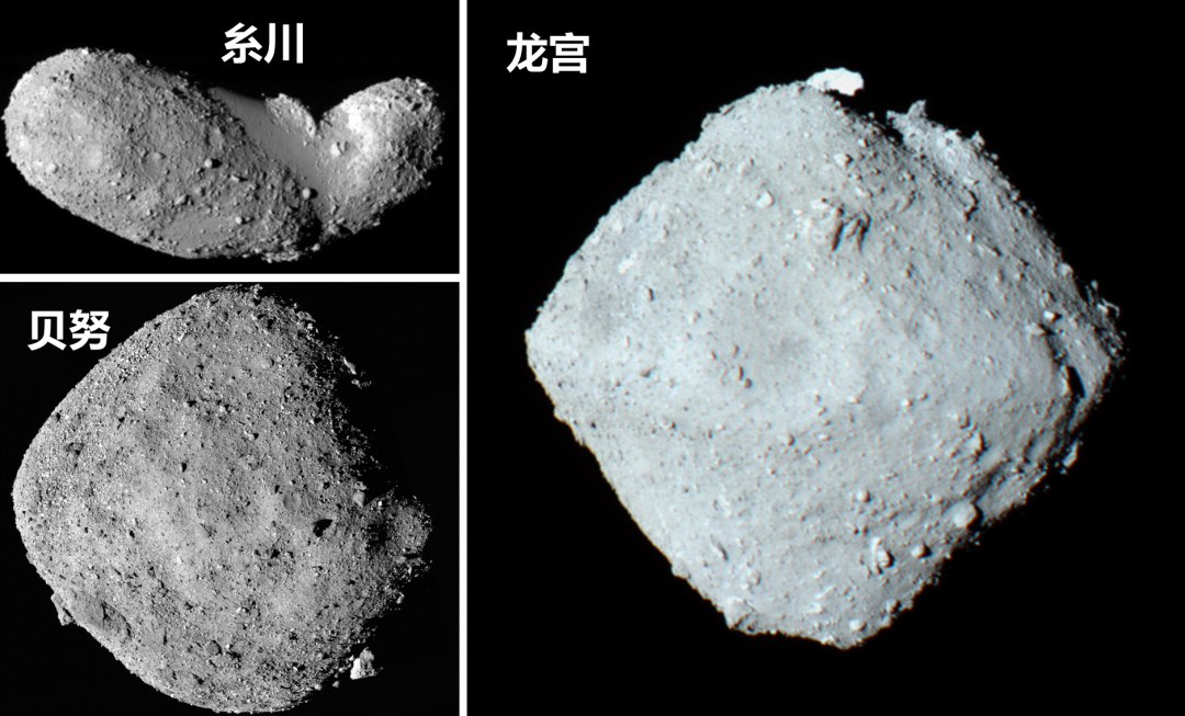 我们之前介绍过的,隼鸟号探访过的糸川(535 米 × 294 米 × 209 米)、隼鸟2号探访过的龙宫(直径约900米)、冥王号探访过的贝努(直径约500米),都是碎石堆型小行星。