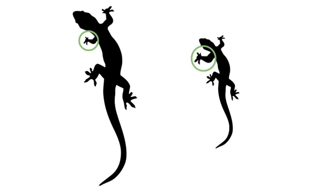 ○ 在20世纪30年代的经典实验中,科学家交叉移植了两种体形不同的蝾螈的肢芽。结果发现,肢的大小由被移植的组织自身控制。从某种角度上来说,蝾螈的肢芽似乎“知道”自己应该长多大。| 图片设计:雯雯