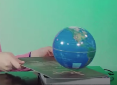 那大家有没有感受到磁的魅力呢?如图所示,这个地球仪和灯泡悬浮起来,没有任何物体支撑,随意将非磁卡片放入其中,也丝毫不会影响它悬浮的状态。转动它、打开它的开关也不会影响它悬浮的状态。学完磁之后我们就知道两个磁体之间是可以通过磁场来传递相互作用力的,而这个磁场是看不见也摸不到的。