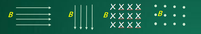 这里定性地描述了磁场的分布,那磁感应强度就是定量地描述。磁场是一个矢量,具有大小和方向。有了这些清晰的物理图像,我们就很容易明白物理试题中有关匀强磁场的概念,首先它的磁场必须是均匀的分布。再看一下磁场的方向,我们可以把磁场形象的看成是从北极射向南极的弓箭,当这个弓箭射向我们的时候,主要看到点的形状,所以点表示磁场的方向是指向我们。当弓箭射向离背我们的方向的时候,看到的是箭尾,也就是用X形来表示磁场的方向是背离我们的。
