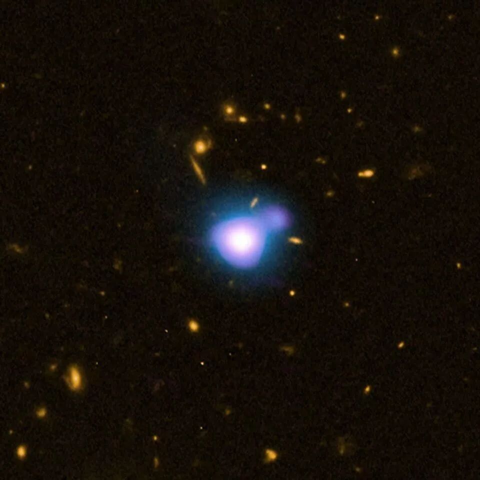 ○ 宇宙中最远的X射线射喷射来自类星体GB 1428,从地球上看,其距离和年龄与类星体S5 0014+81差不多,而后者可能是宇宙中已知最大黑洞的栖居地。这些遥远的庞然大物被认为是由合并或其他引力相互作用激发的,但只有质量与距离比最大的黑洞才有机会被事件视界望远镜分辨。| 图片来源:X-RAY: NASA/CXC/NRC/C.CHEUNG ET AL; OPTICAL: NASA/STSCI; RADIO: NSF/NRAO/VLA