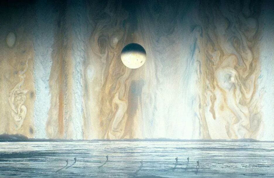 假如,我们能站在冰冷的木星月亮上,欣赏巨幕一般的木星表面,看着那些绚烂的颜色不断搅合。