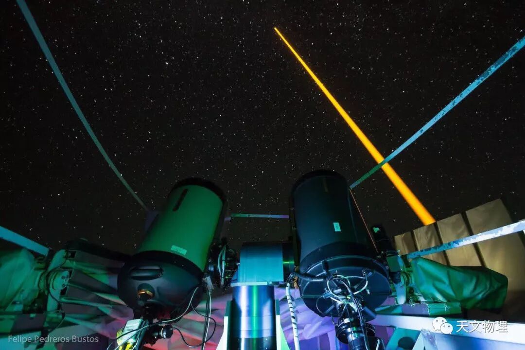 在拉帕尔马的实验:激光束(黄色)在中间层产生一颗人造导星,这种光线是