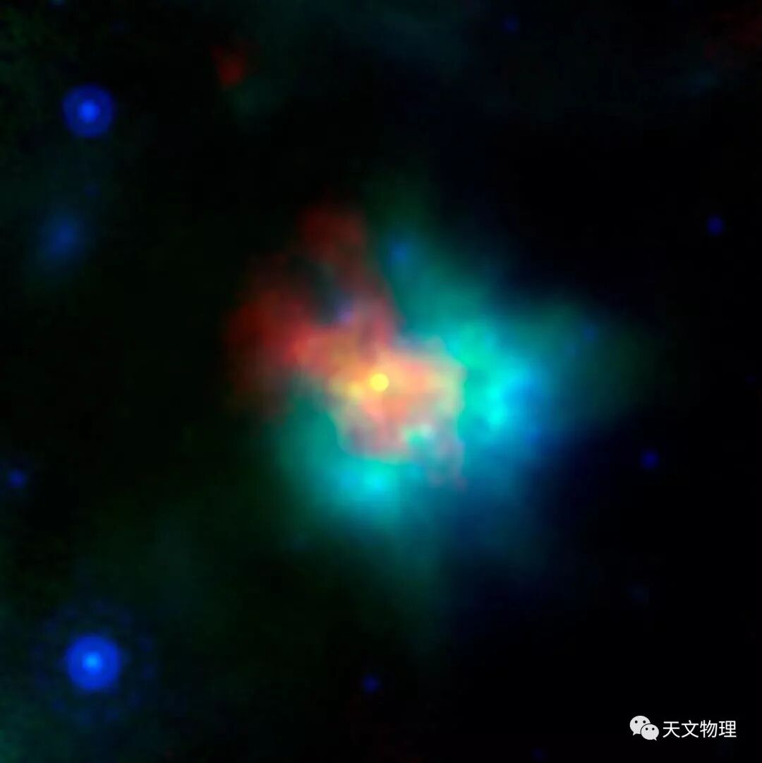 这张照片的超新星遗迹G54.1 + 0.3包括无线电、红外线和x射线光。图片:NASA/JPL-Caltech/CXC/ESA/NRAO/J. Rho (SETI Institute)