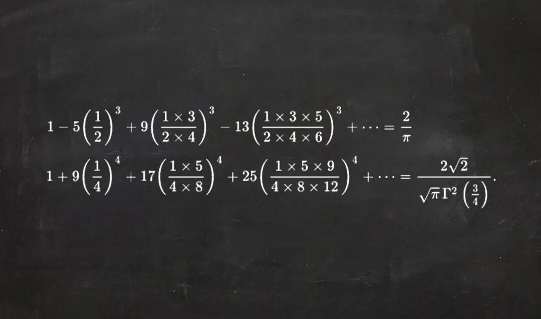 这些手稿几乎没有证明,相关的解释也往往很不充分,但许多内容都让哈代深深折服。手稿中的一些公式对哈代来说并不陌生,比如上图中的第一个等式已经在1859年由Bauer证明。但另外还有一些让哈代觉得不可思议。上图中的第二个等式来源于一类名叫超几何级数(hypergeometric series)的函数,欧拉高斯都曾研究过这类函数。但拉马努金的结果似乎更加吸引人。此外,手稿中还有一些有关质数分布的问题,其实也存在着明显的错误。但瑕不掩瑜,哈代对这位来信的数学家产生了好奇。