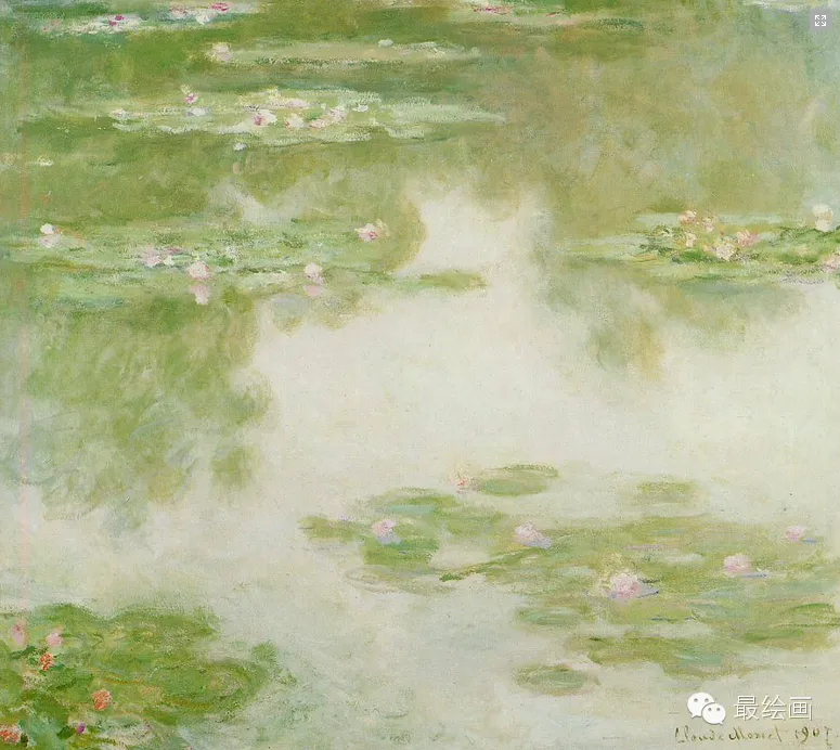 莫奈长期探索光色与空气的表现效果,常常在不同的时间和光线下,对同一对象作多幅的描绘,从自然的光色变幻中抒发瞬间的感觉。 你见过多少幅睡莲?