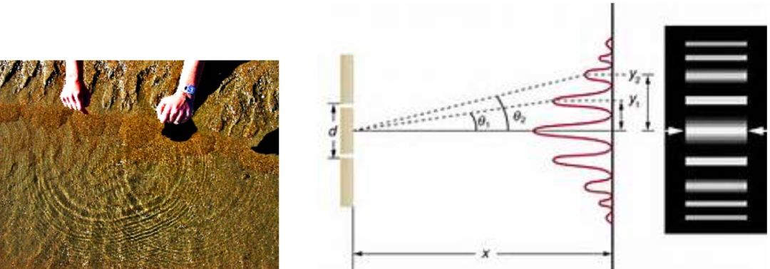 图12. 水的表面张力使得水面可以轻松地激发出波来。来自两个源的水波表现出相干条纹,