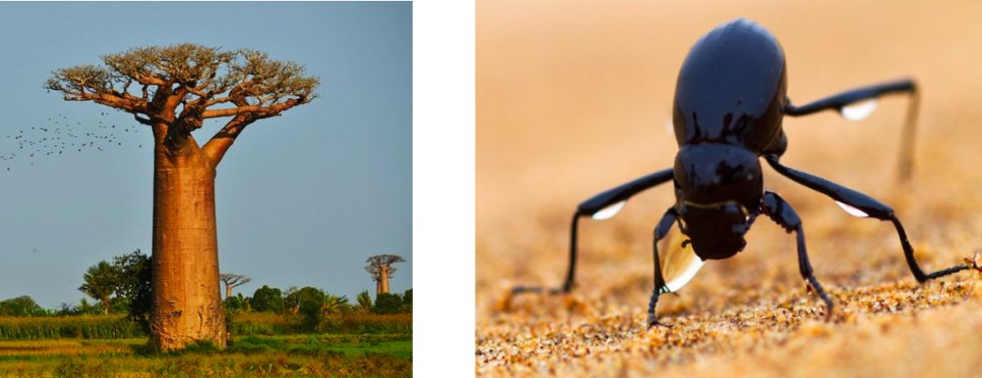 图4. 储满水的猴面包树和会在睡觉时收集水的沙漠甲虫