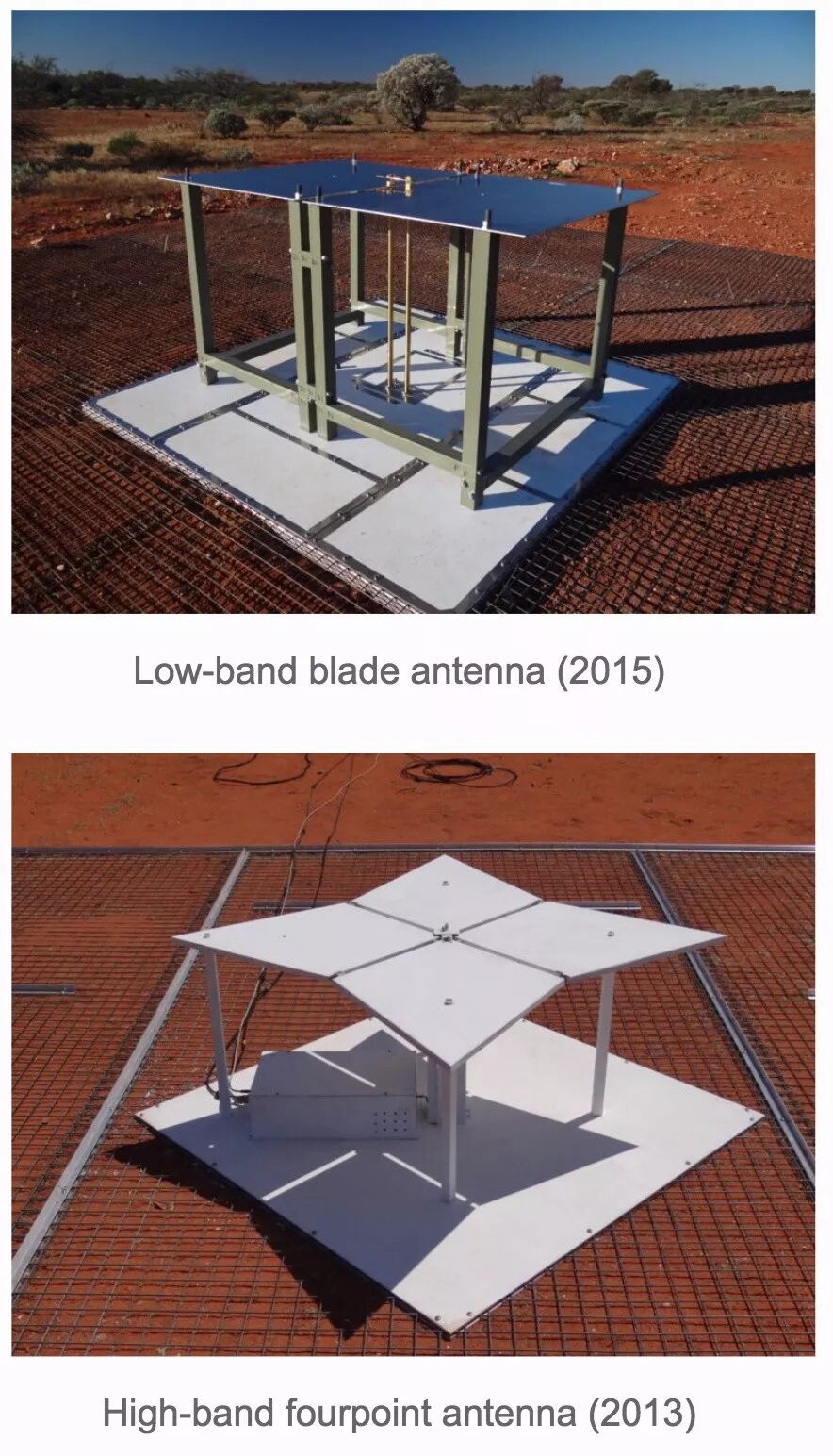 第一代 EDGES 望远镜(下面的“麻将桌”)和第二代 EDGES 望远镜(上面的“餐桌”)LoCo Lab © 2018