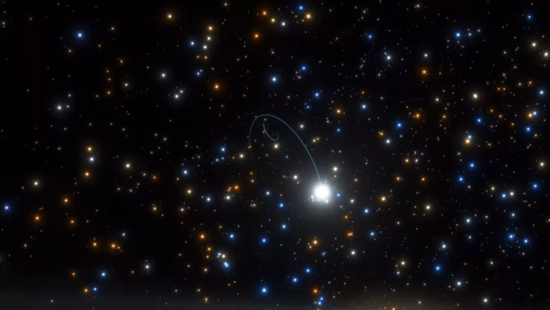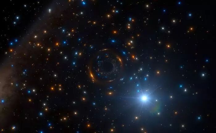 星团ngc3201围绕一个黑洞旋转的概念图,其质量大约是太阳质量的四倍。图片版权:ESO/L. Calçada