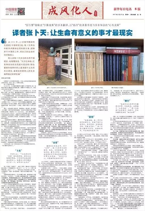 多少了解学术翻译是怎么回事的人,都难免为之惊讶。有人称赞张卜天以“一己之力”为学术传播做出重要贡献,有人评价他是这个时代的大熊猫,商务印书馆学术出版中心编辑李婷婷说他是“绝无仅有的一个译者,简直不像这个世界上的人”。