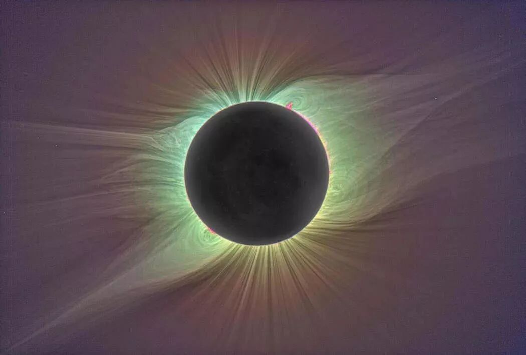 日食期间拍摄到的白光日冕形态,太阳风就沿着那些向远处延伸的条纹涌向太空之中。(图片来源:wordlesstech.com)