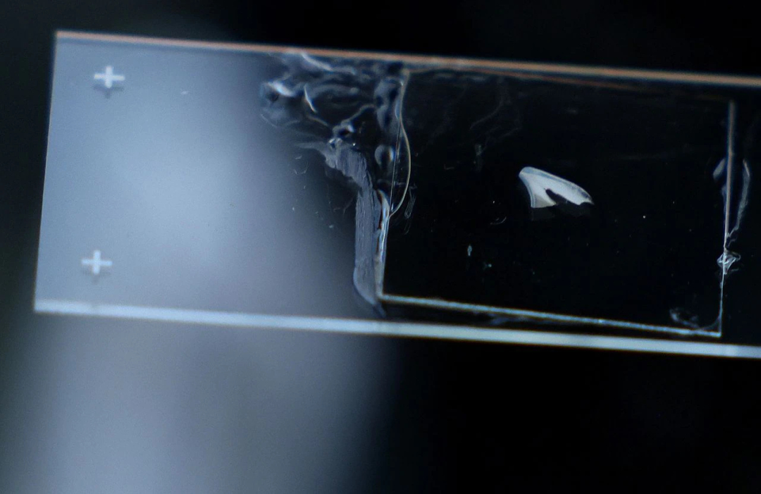 载玻片上的牙釉质纵断面样品(JESSICA RINALDI/GLOBE STAFF)[18]